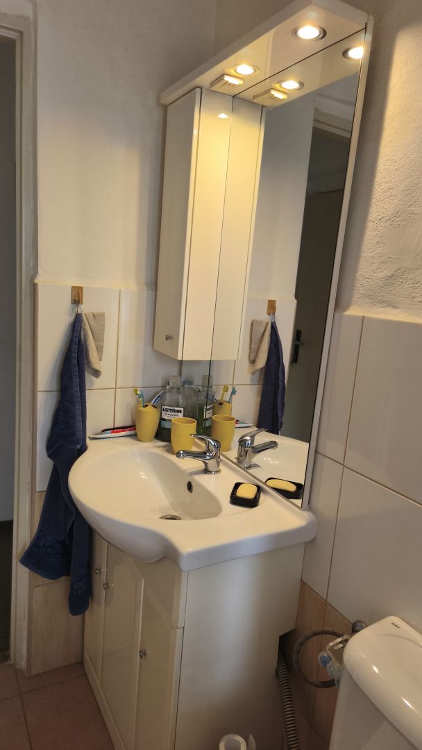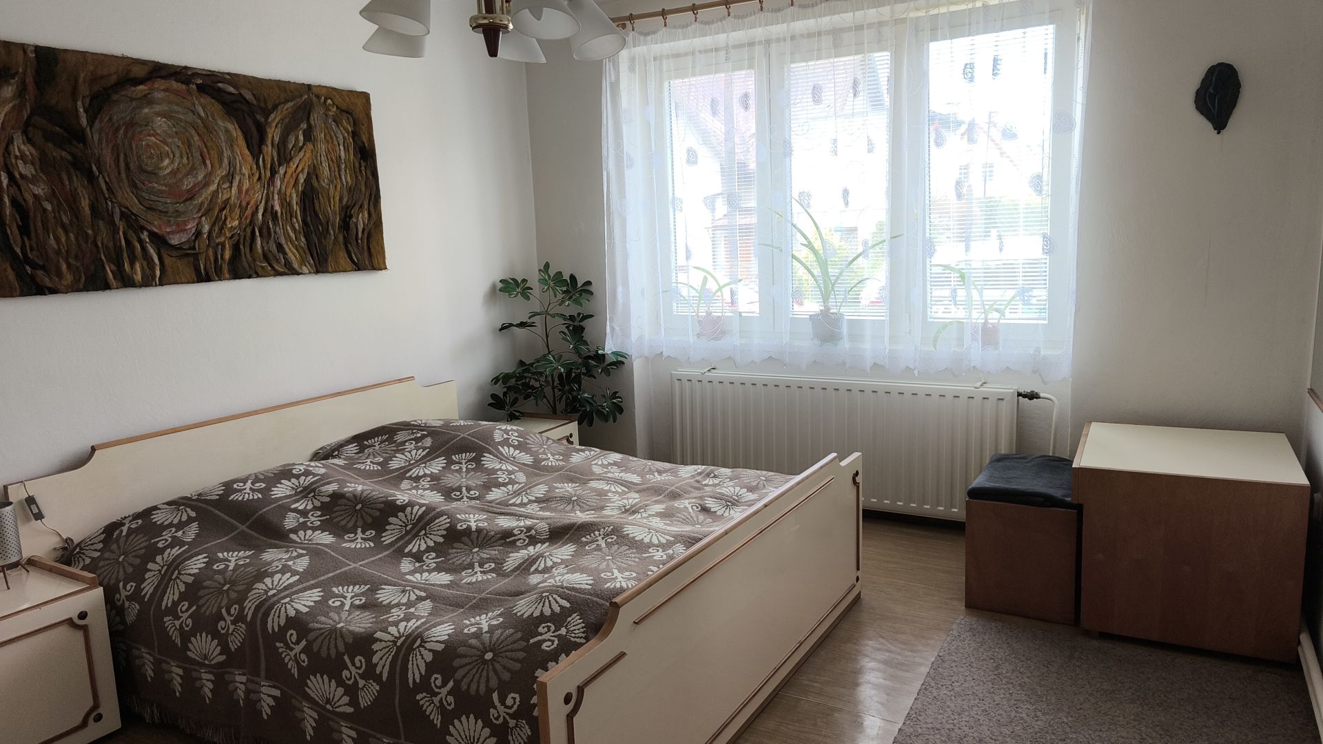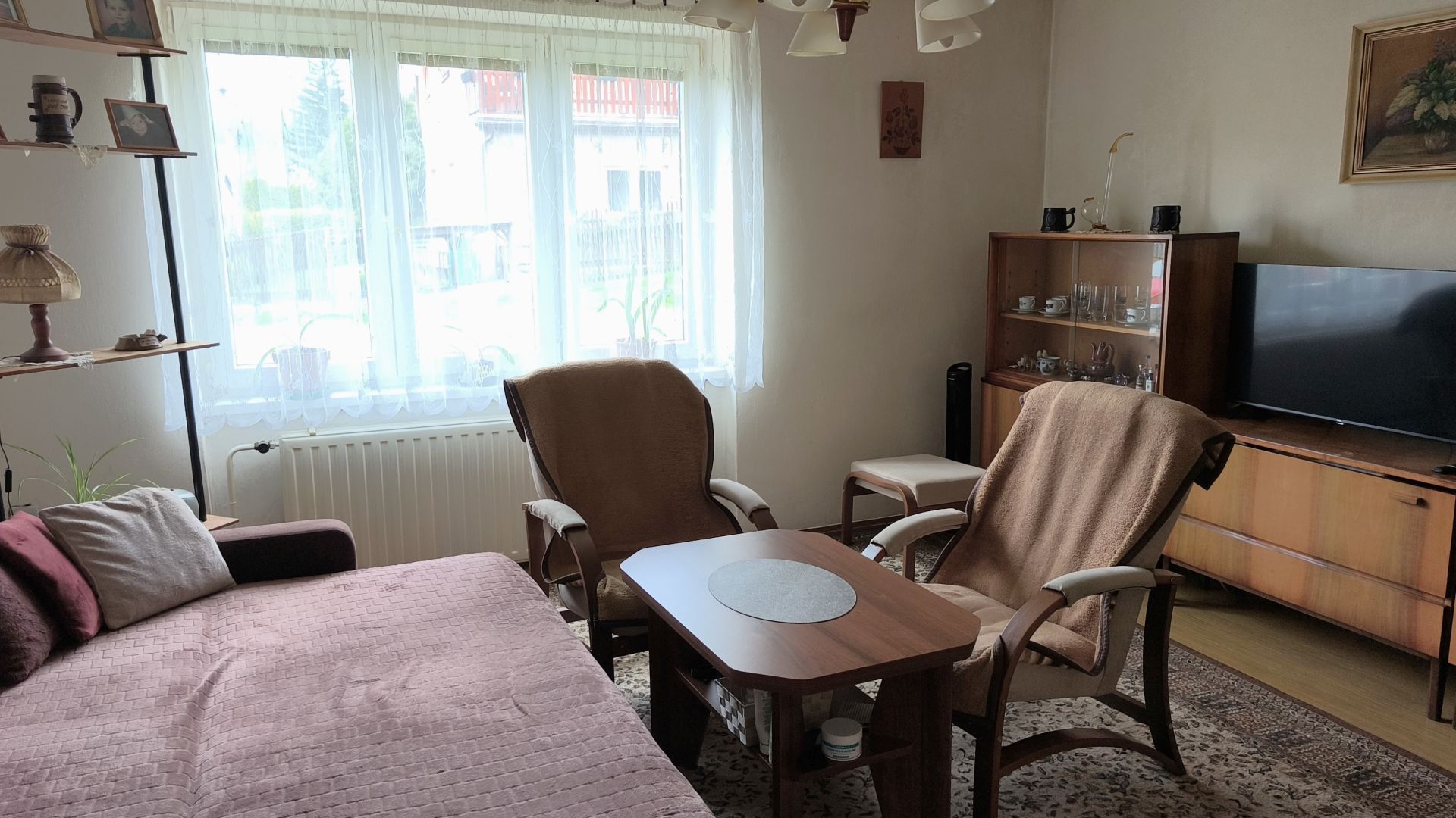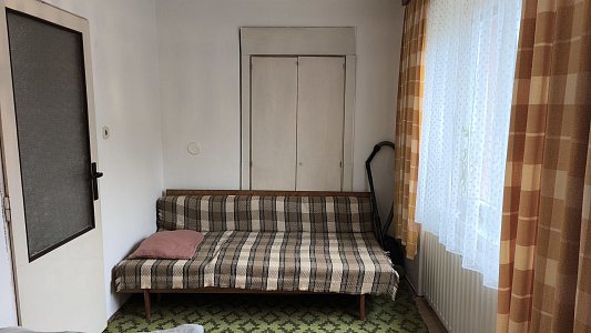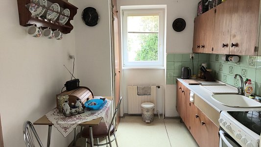 Byt o výměře ca 61 m2 je slušném stavu, jsou tam nová plastová okna, modernizovaná koupelna ale jinak je delší dobu bez úprav. V bytě je možné instalovat krbová kamna, protože je tam komín s novou vložkou. Rozvody elektřiny jsou původní v hliníku. K bytu patří dva zděné sklepy a společná kotelna, kde je umístěn elektrokotel, který zajišťuje vytápění bytu, bojler na elektřinu na ohřev vody i nepoužívaný kotel na tuhá paliva. S bytem se prodává i podíl na parcelách kolem domu.