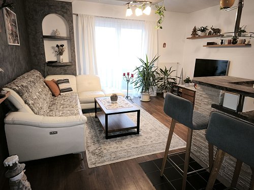 Ze všech pokojů i balkonu je nádherný výhled na Ještědský hřeben. Vytápění a ohřev vody v bytě zajišťuje moderní kotelna na plyn v domě. Interiér domu i jeho okolí je pečlivě udržováno profesionálním správcem firmou Interma. Před domem je bezplatné parkoviště.