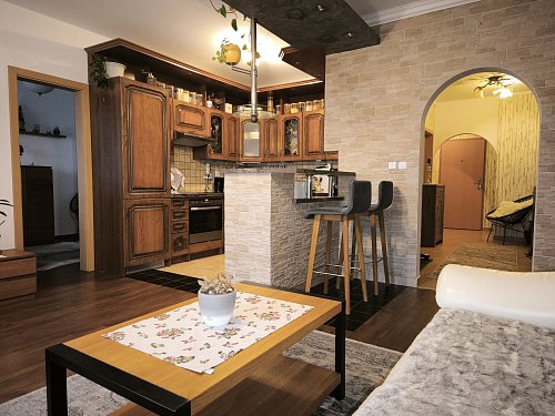 Byt je v osobním vlastnictví, má celkovou plochu ca 74 m2 včetně sklepa i balkonu, a nachází se ve 3.NP moderního bytového domu s výtahem. Byt je průběžně modernizován a působí velice příjemným klidným dojmem. Jeho noblesu podtrhují vkusné dekorativní malby, zánovní kuchyňská linka z masivního dřeva a nově položené vinylové podlahy. Byt je velice slunný, orientovaný na jih, středový a jsou v něm nízké měsíční náklady na bydlení v aktuální výši 4.000,- Kč + elektřina, což je praktické pro bydlení a velice výhodné v případě pronájmu. V bytě je zděná koupelna, samostatné WC i prostorná předsíň. Podlahová plocha bytu je 67,66 m2 + sklep 4,49 m2 + balkon 2 m2. Byt bude k nastěhování dle dohody mezi prodávajícím a kupujícím.