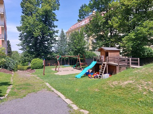 Součástí nájmu je bezplatné užívání atria rezidenčního komplexu, které je obehnáno vysokou gabionovou zdí a nabízí profesionálně udržované společné prostory. Mezi tyto prostory patří prostorné dětské hřiště, altán s grilem, venkovní bazén o rozměrech ca 5 x 10 m, sluneční louka pro opalování a posezení, a také vnitřní posilovna. Bezpečnost objektu zajišťuje čipový systém pro vstup do domu a kamerový systém, který monitoruje areál. Úklid a údržbu společných prostor zajišťuje spolehlivá firma.
