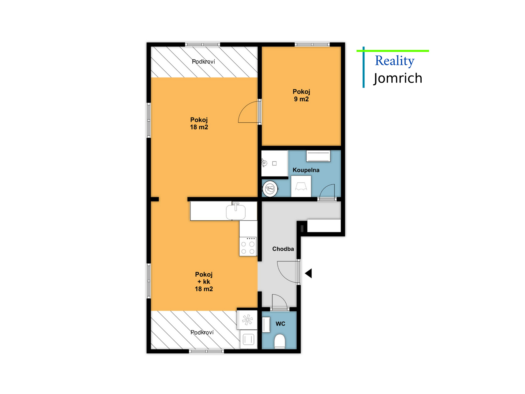 Vytápění zajišťuje společná kotelna na plyn v domě, rozpočítání spotřebovaného tepla se počítá podle podlahové plochy, vodu ohřívá boiler na elektřinu v bytě. Byt je umístěn ve 3. patře – podkroví bytového domu a bude k nastěhování v průběhu března 2026.