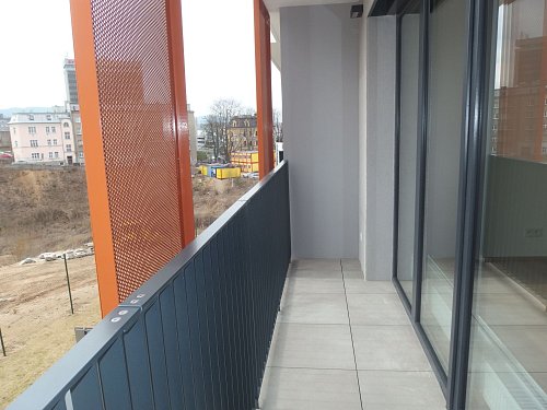 Pronájem nového bytu 1+kk s balkonem, celkem ca 48 m 2, v centru Liberce, ul. Na Perštýně. Jedná se o jedinečnou nabídku právě dokončeného rezidenčního bydlení od architektů nazvaného Rezidence Nový Perštýn, která splňuje vysoké nároky na bydlení. Interiér bytu je pečlivě naplánován tak, aby se jeho uživatel cítil opravdu komfortně a to zejména díky prakticky celoplošně prosklené stěně orientované na západ, která je ještě vylepšená o balkón o ploše ca 5m2.