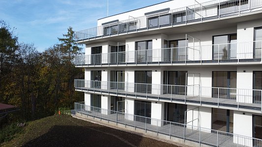V bytě jsou dřevěná okna s trojskly, podlahové topení, předokenní žaluzie i sítě proti hmyzu, vinylové podlahy, moderní vybavení koupelny i dvě samostatná WC a hlavně luxusní kuchyňská linka včetně spotřebičů za pořizovací cenu ve výši ca 300.000,- Kč. V bytě jsou dva pokoje s lodžií, což ještě více zvyšuje jeho bonitu. K nastěhování bude dle dohody s nájemcem. Součástí nájmu je i jedno parkovací stání pro auto v suterénu budovy a před domem je bezplatné parkoviště. Celý byt i komplex dvou bytových domů působí velice příjemným dojmem. Budovy jsou vytápěné novou kotelnou přímo v místě a jejich energetická náročnost je ve třídě B - velice úsporná.