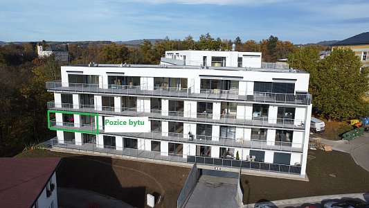 Pronájem nového bytu 4+kk s terasou, klimatizací a krytým parkováním, ca 112 m2, v Turnově.