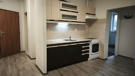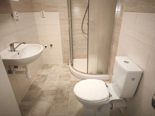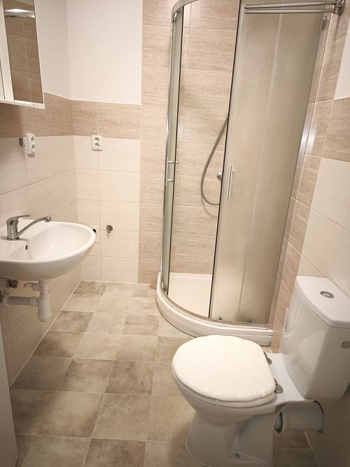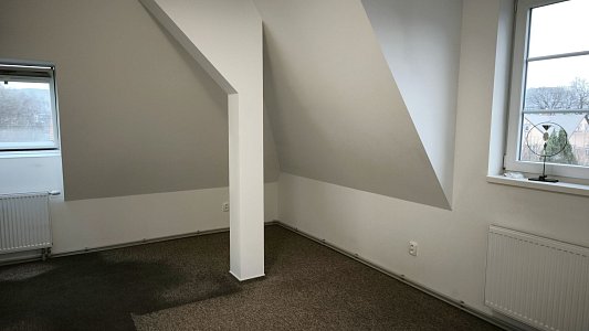 Byt je umístěn ve 2. patře (podkroví) bez výtahu, má plochu ca 55 m2, a je v něm k dispozici pěkná kuchyňská linka včetně sporáku a digestoře a koupelna se sprchovým koutem. Stávající koberec bude pronajímatelem vyměněn na jeho náklady.